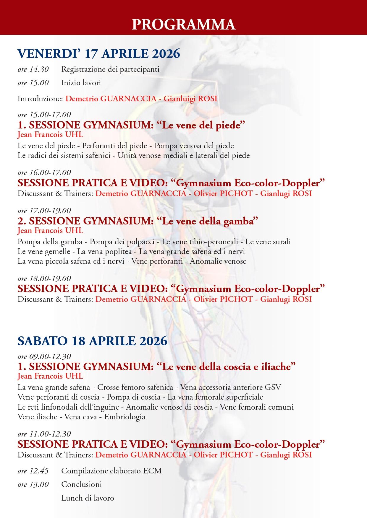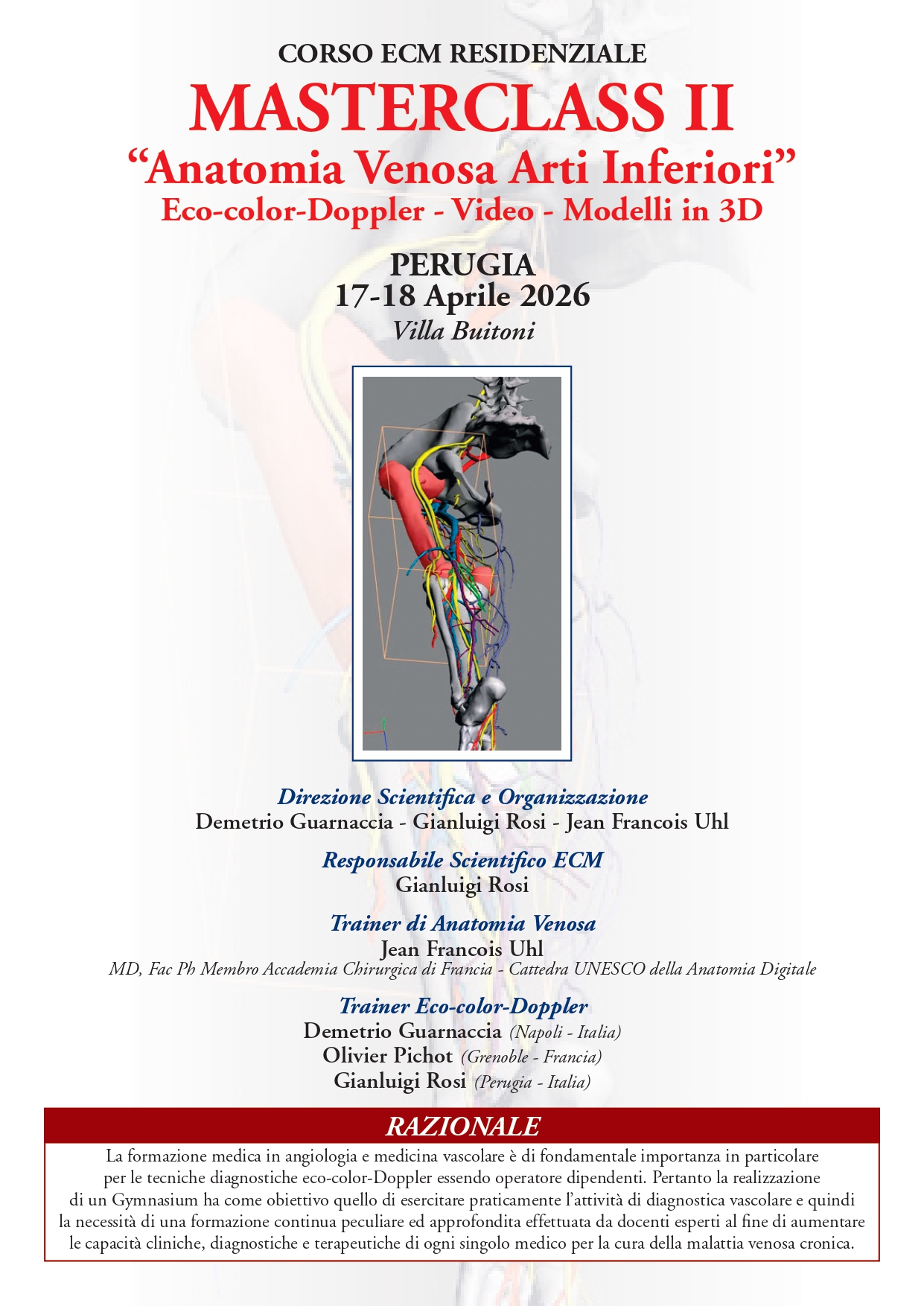 MASTERCLASS II “Anatomia Venosa Arti Inferiori” Eco-color-Doppler – Video – Modelli in 3D SCARICA DEPLIANT SCHEDA ISCRIZIONE on line Nome(Obbligatorio) Cognome(Obbligatorio) Residente in Via(Obbligatorio) N.(Obbligatorio) CAP(Obbligatorio) Città(Obbligatorio) Telefono(Obbligatorio) Email(Obbligatorio) Professione(Obbligatorio) Laurea(Obbligatorio) Specializzazione(Obbligatorio) INFORMAZIONI GENERALI ISCRIZIONE: La quota di iscrizione è di €. 610 iva compresaEvento a numero chiuso. MODALITÀ DI PAGAMENTO: la copia del Bonifico Bancario va inviata a iscrizioni@etruscaconventions.comCausale: Quota Iscrizione del dr [NOME COGNOME] 17/18 aprile 2026 BANCA BNL GRUPPO BNL PARIBASCODICE IBAN IT49T0100503000000000004007 Intestato a ETRUSCA CONVENTIONS SNC. Nella quota iscrizione è compresa la partecipazione al pranzo del 18 Aprile. DATI PER FATTURAZIONE Nome(Obbligatorio) Cognome(Obbligatorio) Via(Obbligatorio) N.(Obbligatorio) CAP(Obbligatorio) Città(Obbligatorio) CODICE FISCALE(Obbligatorio) PARTITA IVA SDI (se in possesso) o PEC SEGRETERIA ORGANIZZATIVA Responsabile: Sonia Arcangeliinfo@etruscaconventions.com Crediti ECM per Medico Chirurgo(Obbligatorio) Desidero crediti ECM NON desidero i crediti ECM Richiedo ECM per Chirurgia Generale Medicina Interna Medicina Generale Chirurgia Vascolare Angiologia Geriatria Medicina Fisica e Riabilitazione Medicina dello Sport Cardiologia Privacy(Obbligatorio)Il GDPR (Regolamento Generale sulla Protezione dei Dati) UE 2016/679, in vigore dal 25/05/2018 tutela la tua privacy ed è costituito da una serie di norme che disciplina la privacy e la sicurezza dei dati personali e sostituisce la direttiva sulla protezione dei dati. AUTORIZZAZIONE ALLA GESTIONE DEI DATI AL FINE DI COMPLETARE L’ISCRIZIONE AD UN EVENTO ORGANIZZATO DA ETRUSCA CONVENTIONS AUTORIZZO ETRUSCA CONVENTIONS A GESTIRE I MIEI DATI PERSONALI AL FINE DI COMPLETARE LA MIA ISCRIZIONE E LE FUTURE POSSIBILI ISCRIZIONI. ETRUSCA CONVENTIONS DICHIARA CHE QUESTI DATI NON SARANNO DIFFUSI A NESSUNO CHE NON SIA STRETTAMENTE COLLEGATO ALLA GESTIONE DELL’ISCRIZIONE. IMPORTANTE: se la presente autorizzazione viene negata, non sarà possibile procedere con l'iscrizione all'evento. AUTORIZZO ETRUSCA CONVENTIONS A GESTIRE I MIEI DATI PERSONALI AL FINE DI COMPLETARE LA MIA ISCRIZIONE E LE FUTURE POSSIBILI ISCRIZIONI. ETRUSCA CONVENTIONS DICHIARA CHE QUESTI DATI NON SARANNO DIFFUSI A NESSUNO CHE NON SIA STRETTAMENTE COLLEGATO ALLA GESTIONE DELL’ISCRIZIONE. Leggi l'informativa completa.Newsletter(Obbligatorio)AUTORIZZAZIONE ALLA GESTIONE DEI DATI AL FINE DI RICEVERE COMUNICAZIONI INERENTI CONVEGNI SCIENTIFICI da etrusca conventions organizzati. Autorizzo Etrusca Conventions a gestire i miei dati personali per comunicazioni marketing (annunci, programmi e informazioni inerenti convegni ed eventi organizzati da Etrusca Conventions). Etrusca Conventions dichiara che questi dati non saranno diffusi a nessuno che non sia strettamente collegato alla gestione delle iscrizioni Non autorizzo ← →
