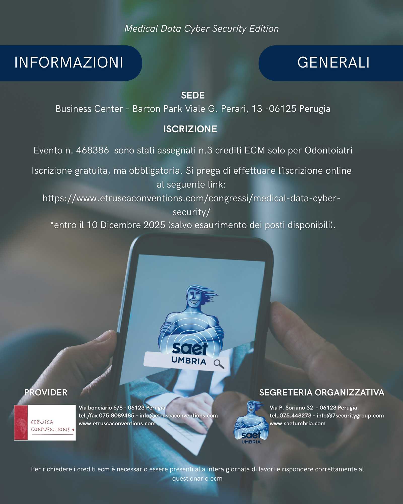 Medical Data Cyber Security SCARICA DEPLIANT SCHEDA ISCRIZIONE on line Nome(Obbligatorio) Cognome(Obbligatorio) Città(Obbligatorio) Telefono(Obbligatorio) Luogo di nascita(Obbligatorio) Data di nascita(Obbligatorio) Email(Obbligatorio) Crediti ECM per Odontoiatri(Obbligatorio) Desidero crediti ECM NON desidero i crediti ECM Privacy(Obbligatorio)Il GDPR (Regolamento Generale sulla Protezione dei Dati) UE 2016/679, in vigore dal 25/05/2018 tutela la tua privacy ed è costituito da una serie di norme che disciplina la privacy e la sicurezza dei dati personali e sostituisce la direttiva sulla protezione dei dati. AUTORIZZAZIONE ALLA GESTIONE DEI DATI AL FINE DI COMPLETARE L’ISCRIZIONE AD UN EVENTO ORGANIZZATO DA ETRUSCA CONVENTIONS AUTORIZZO ETRUSCA CONVENTIONS A GESTIRE I MIEI DATI PERSONALI AL FINE DI COMPLETARE LA MIA ISCRIZIONE E LE FUTURE POSSIBILI ISCRIZIONI. ETRUSCA CONVENTIONS DICHIARA CHE QUESTI DATI NON SARANNO DIFFUSI A NESSUNO CHE NON SIA STRETTAMENTE COLLEGATO ALLA GESTIONE DELL’ISCRIZIONE. IMPORTANTE: se la presente autorizzazione viene negata, non sarà possibile procedere con l'iscrizione all'evento. AUTORIZZO ETRUSCA CONVENTIONS A GESTIRE I MIEI DATI PERSONALI AL FINE DI COMPLETARE LA MIA ISCRIZIONE E LE FUTURE POSSIBILI ISCRIZIONI. ETRUSCA CONVENTIONS DICHIARA CHE QUESTI DATI NON SARANNO DIFFUSI A NESSUNO CHE NON SIA STRETTAMENTE COLLEGATO ALLA GESTIONE DELL’ISCRIZIONE. Leggi l'informativa completa.Newsletter(Obbligatorio)AUTORIZZAZIONE ALLA GESTIONE DEI DATI AL FINE DI RICEVERE COMUNICAZIONI INERENTI CONVEGNI SCIENTIFICI da etrusca conventions organizzati. Autorizzo Etrusca Conventions a gestire i miei dati personali per comunicazioni marketing (annunci, programmi e informazioni inerenti convegni ed eventi organizzati da Etrusca Conventions). Etrusca Conventions dichiara che questi dati non saranno diffusi a nessuno che non sia strettamente collegato alla gestione delle iscrizioni Non autorizzo ← →